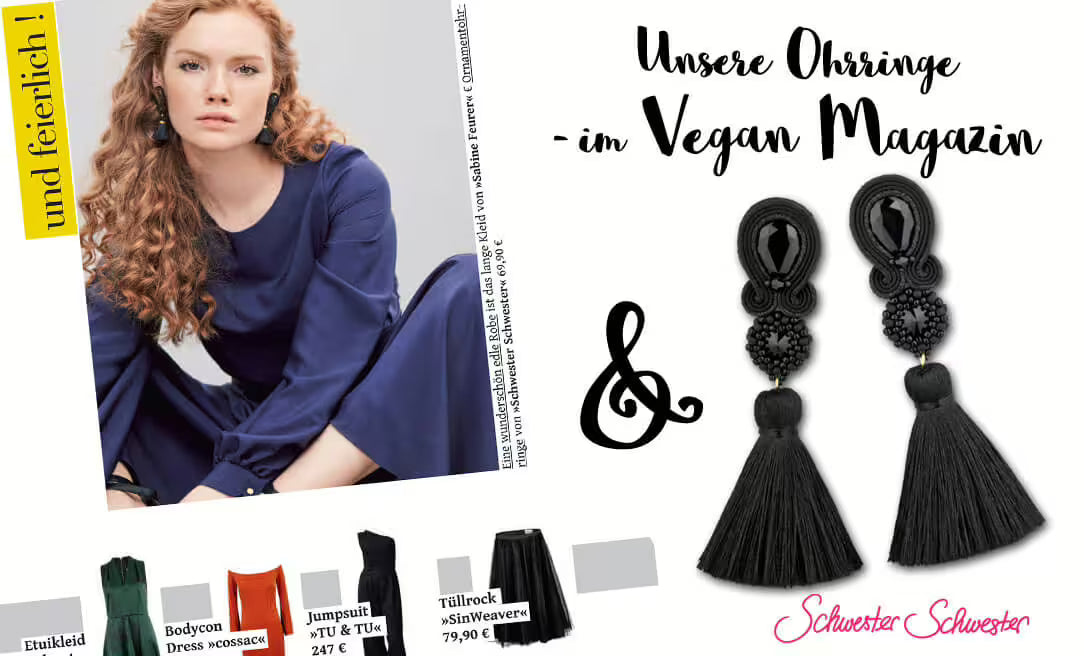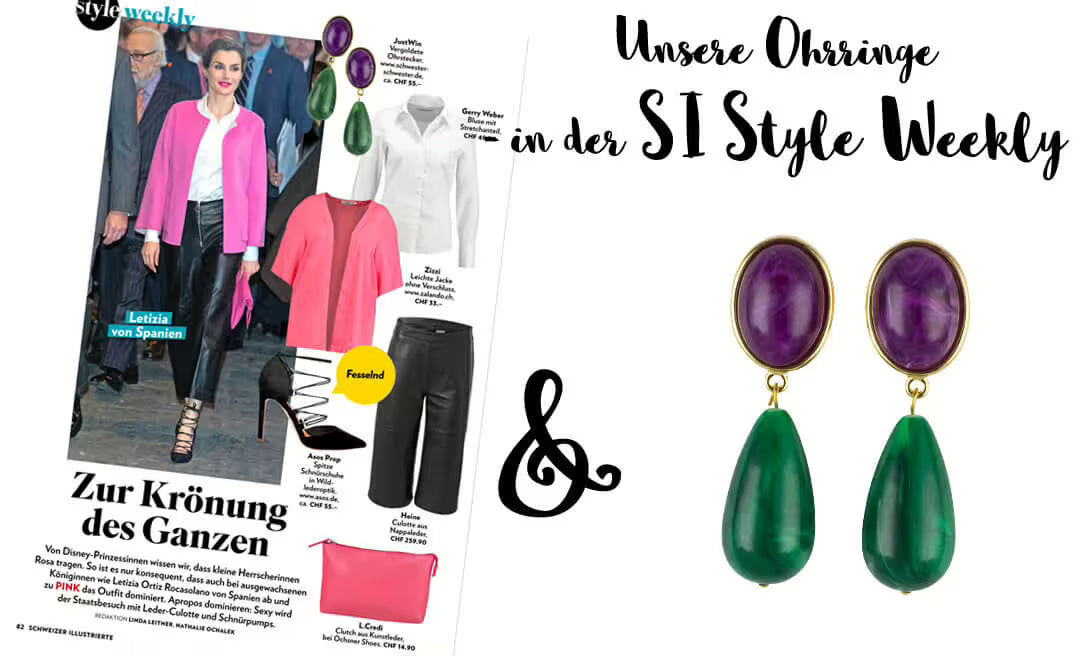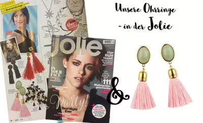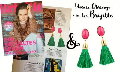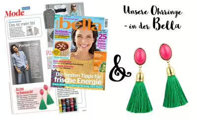 Die Redaktion der Bella zeigt unsere Quasten-Ohrringe in Pink und Smaragdgrün