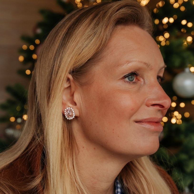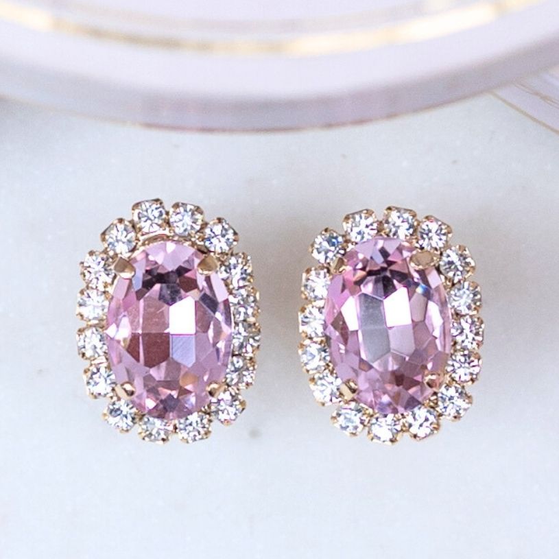 Diese ovalen Statement-Ohrringe aus schimmernden rosa Glas-Kristallen sind ein echtes Highlight für Deinen Alltag und für all die Momente, in denen Du Dich besonders fühlen möchtest. Ihr Design vereint einen großen, funkelnden Schmuckstein in der Mitte mit fein arrangierten Kristallen, die das Licht auf eine zauberhafte, elegante Weise einfangen. Dadurch entsteht ein außergewöhnlicher Glanz, der Deinen Look sofort veredelt und Dir ein warmes Strahlen ins Gesicht zaubert.
